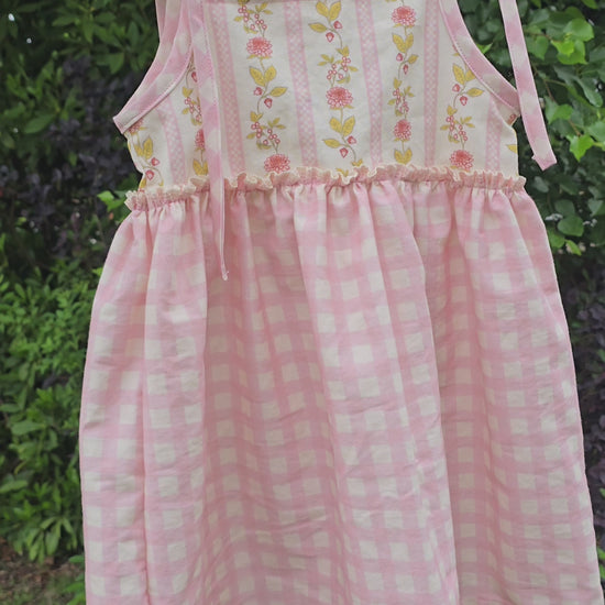 Our "Penelope" dress is as sweet as it's name, with a gathered, frilled waistline and knee-length skirt, perfect for twirls. The straps tie at the tops of the shoulders for ease of adjusting to a size specific to your little gal š